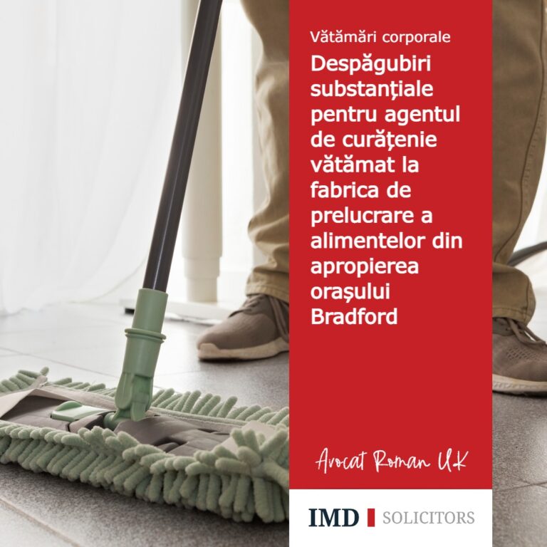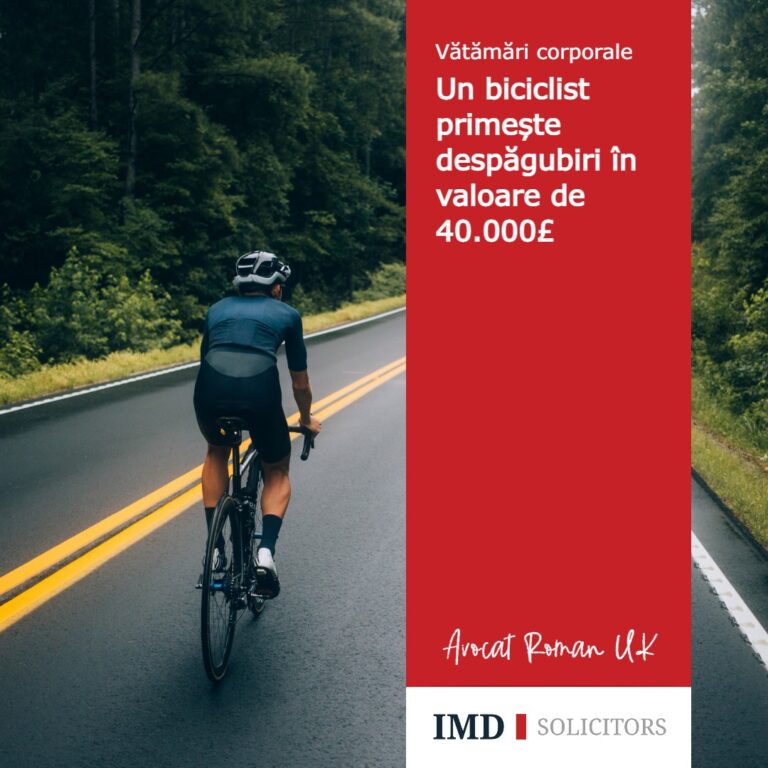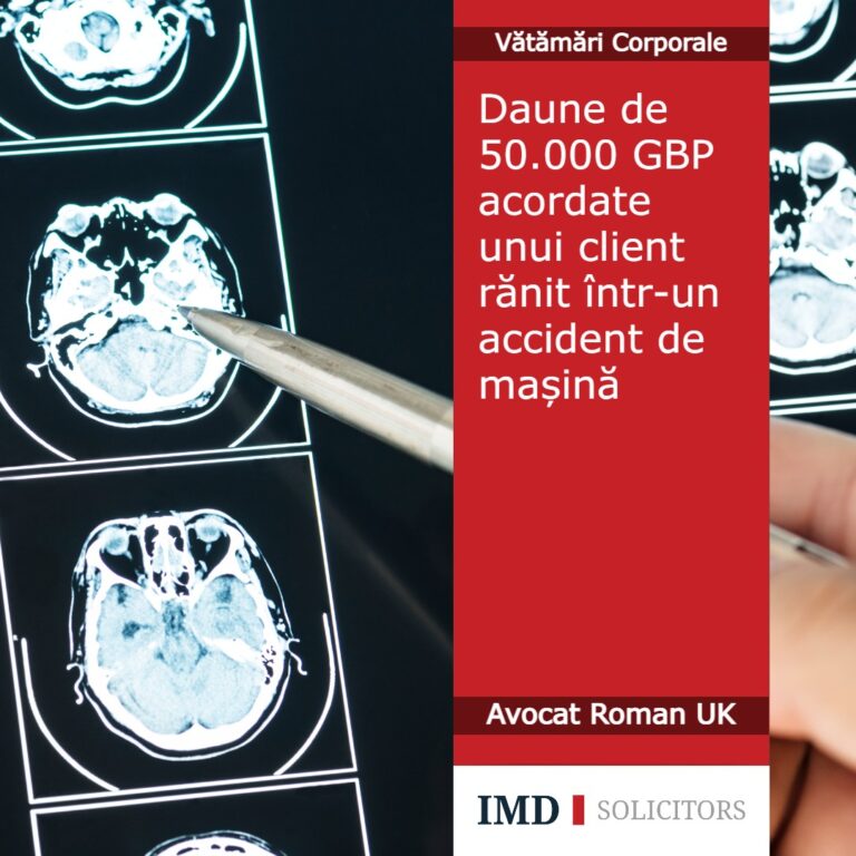 Confirmăm cu plăcere că am obținut despăgubiri în valoare de 75.000 £ pentru clientul nostru român care a fost lovit de o mașină în timp ce traversa o stradă în Londra. Clientul a fost reprezentat de dl Wiktor Buza, partener și avocat, cu sprijin din partea lui Alexandru Duminica, jurist în cadrul IMD Solicitors. Faptele […]