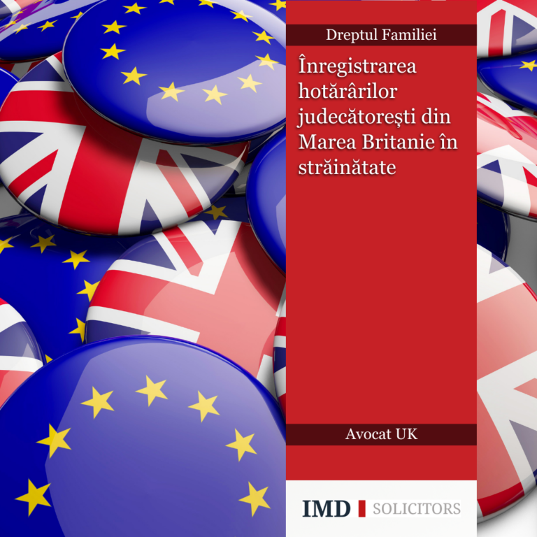 La IMD Solicitors LLP ne ocupăm de numeroase cazuri care necesită înregistrarea ordinelor judecătorești britanice în jurisdicții străine, cum ar fi România, Polonia, Spania. Acest studiu de caz își propune să clarifice procesul de a obține recunoașterea și executarea unui ordin judecătoresc din Marea Britanie în altă țară, folosind România ca exemplu principal. Acest proces este esențial pentru clienții care au fost supuși unor proceduri judiciare în Marea Britanie, de exemplu, divorț sau proceduri referitoare la custodia copiilor, și care au nevoie ca rezultatul să fie recunoscut în țara lor de origine.
